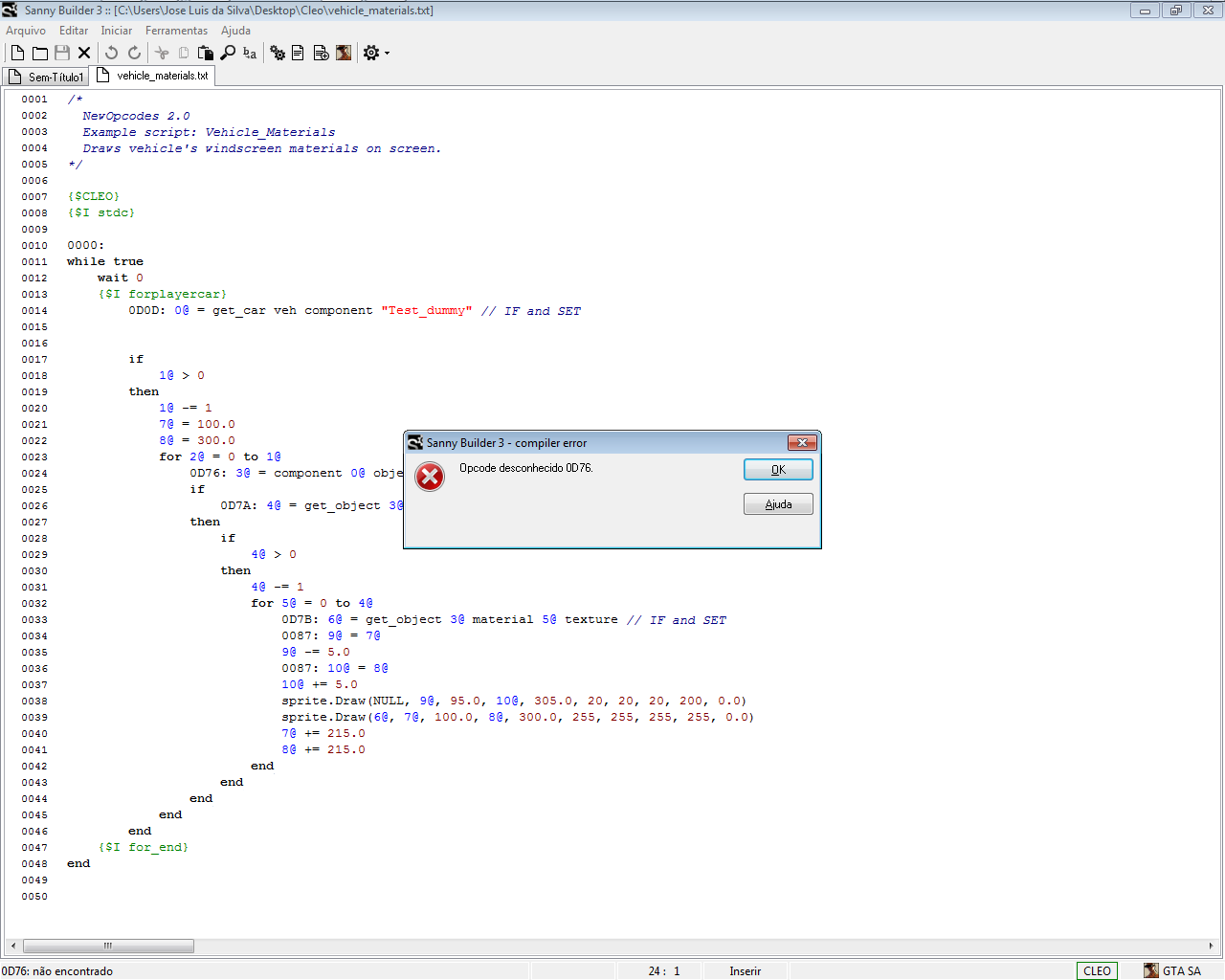 | Description | Unknown opcode 0D76 but this is appearing in SASCM.ini | ||||||||
