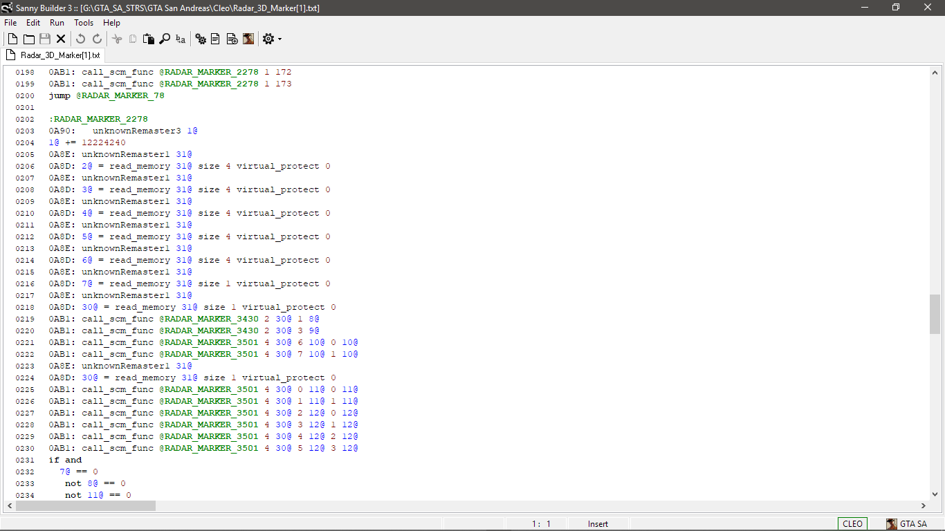 For some reason a few mobile opcodes sneaked into desktop definitions. You can open SASCM.ini and remove these from the end: 0A52=1, 0A5B=6,unknownRemaster0 0A6F=1, 0A78=2, 0A79=2, 0A8E=1,unknownRemaster1 %1d% 0A8F=0,unknownRemaster2 0A90=1, unknownRemaster3 %1d% It should make CLEO opcodes work fine |